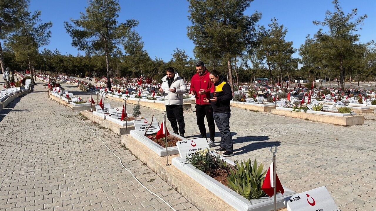 Göztepe Basketbol Menajeri Onur Aksoy ile Divan Kurulu üyeleri Ali Koç ve Hasan Tekin’den oluşan heyet, ilk olarak Kapıçam Mezarlığı’nı ziyaret ederek depremde hayatını kaybeden vatandaşları andı. Sarı-kırmızılı yöneticiler, kabirlere çiçek bırakarak dua etti.