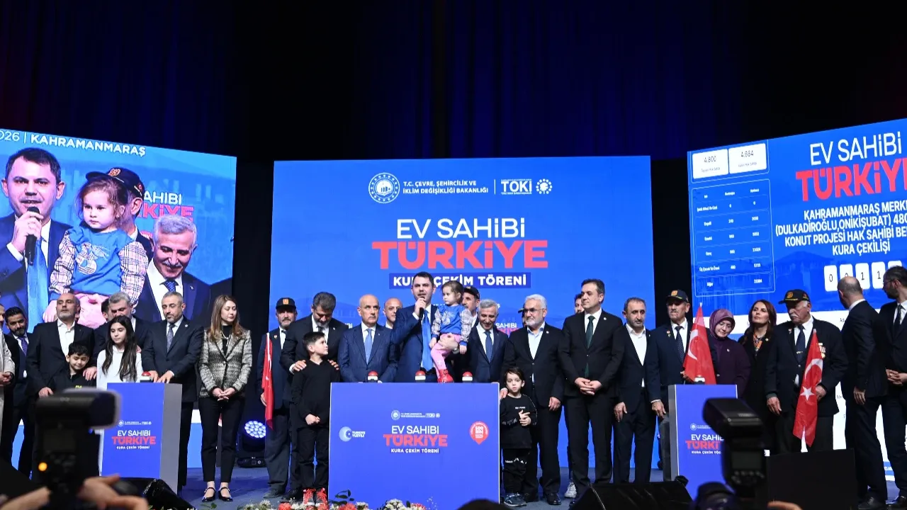 Kahramanmaraş’ta deprem sonrası yeniden inşa ve sosyal konut hamlesinin en önemli adımlarından biri daha hayata geçirildi. Çevre, Şehircilik ve İklim Değişikliği Bakanı Murat Kurum’un katılımıyla “Yüzyılın Konut Projesi” kapsamında şehirde inşa edilecek 8 bin 195 sosyal konutun kura çekim töreni yoğun katılımla gerçekleştirildi. Kahramanmaraş Sütçü İmam Üniversitesi Yunus Emre Kongre ve Kültür Merkezi’nde düzenlenen programa; 66. Hükümet Tarım ve Orman Bakanı Prof. Dr. Vahit Kirişci, Vali Mükerrem Ünlüer, HÜDAPAR Genel Başkanı Zekeriya Yapıcıoğlu, Kahramanmaraş Milletvekilleri Ömer Oruç Bilal Debgici, Tuba Köksal, Mevlüt Kurt, İrfan Karatutlu ve Zuhal Karakoç Dora, AK Parti İl Başkanı Muhammed Burak Gül, TOKİ Başkanı Levent Sungur, ilçe belediye başkanları, sivil toplum kuruluşu temsilcileri ve çok sayıda vatandaş katıldı. Saygı duruşu ve İstiklal Marşı’nın okunmasıyla başlayan programda Cumhurbaşkanı Recep Tayyip Erdoğan’ın mesajı okundu.