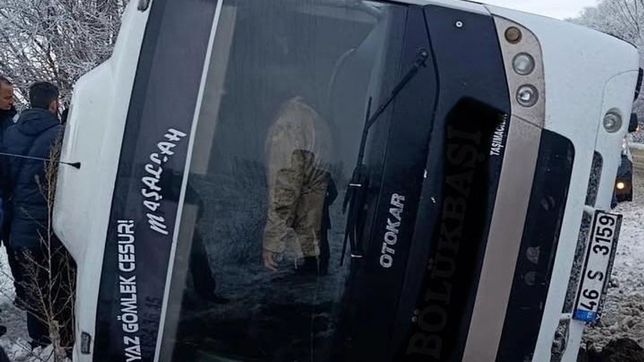 Kahramanmaraş’ın Elbistan–Çoğulhan karayolunda termik santrale işçi taşıyan servis aracı, kaygan zemin nedeniyle kontrolden çıkarak devrildi.