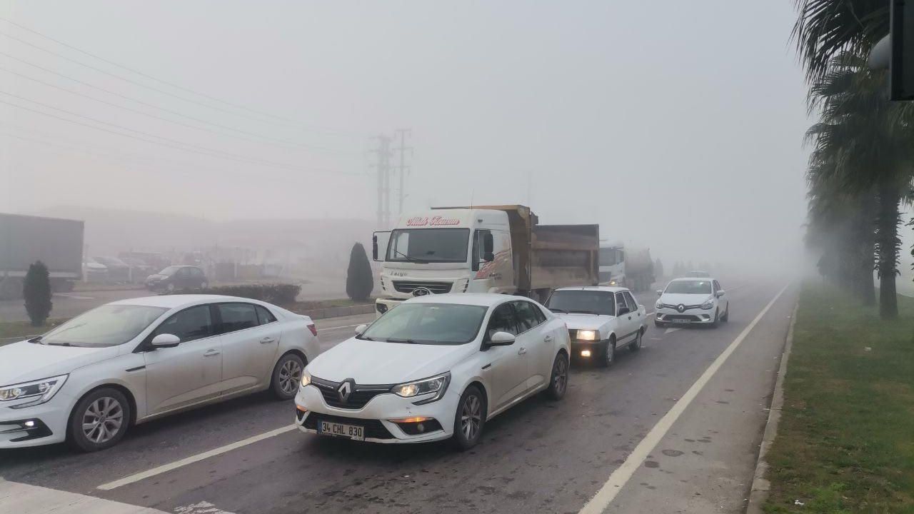 Kent merkezinde yüksek kesimlerde etkili olan sis nedeniyle sürçüler trafikte ilerlemekte güçlük çekti.