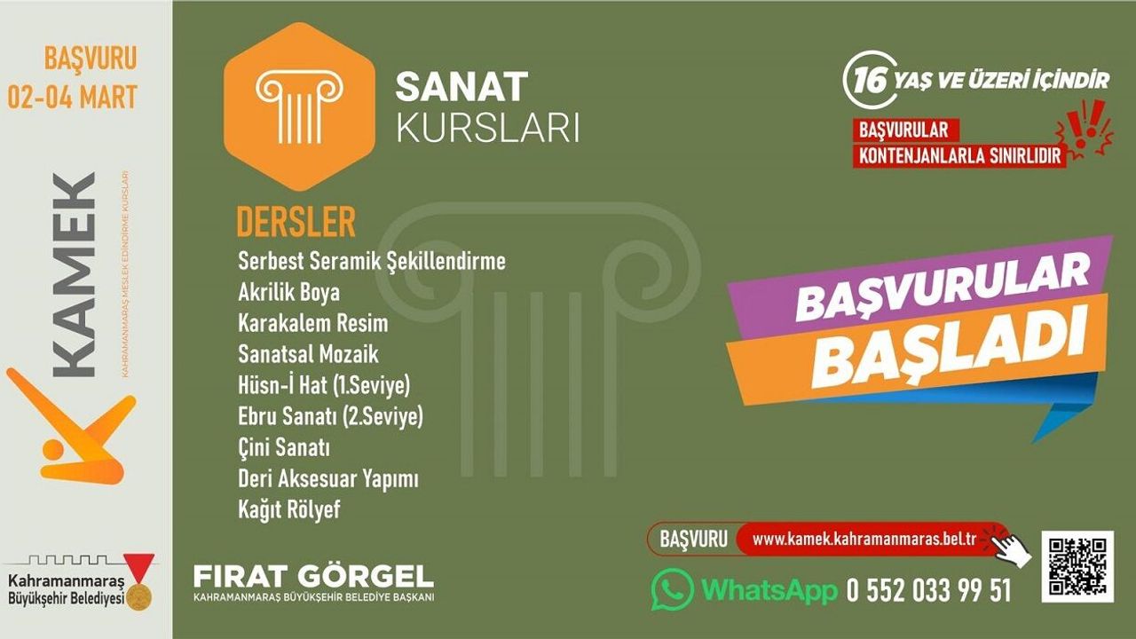 Kahramanmaraş Büyükşehir Belediyesi, vatandaşların kişisel gelişimlerine katkı sağlamak ve sosyal hayata daha aktif katılımlarını desteklemek amacıyla düzenlediği Meslek Edindirme ve Sanat Eğitimi Kursları’nda (KAMEK) bahar dönemini başlatıyor. Her yaştan vatandaşa hitap eden kurs programları, yeni dönemde de zengin içerikleriyle dikkat çekiyor. KAMEK’te bahar dönemi kapsamında toplam 26 farklı branşta ücretsiz eğitim verilecek.