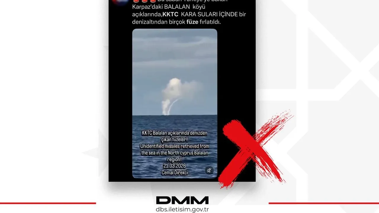 İletişim Başkanlığı bünyesindeki Dezenformasyonla Mücadele Merkezi, bazı sosyal medya hesaplarında paylaşılan 'KKTC karasularındaki bir denizaltından çok sayıda füze fırlatıldığı' yönündeki iddiaların asılsız olduğunu duyurdu.