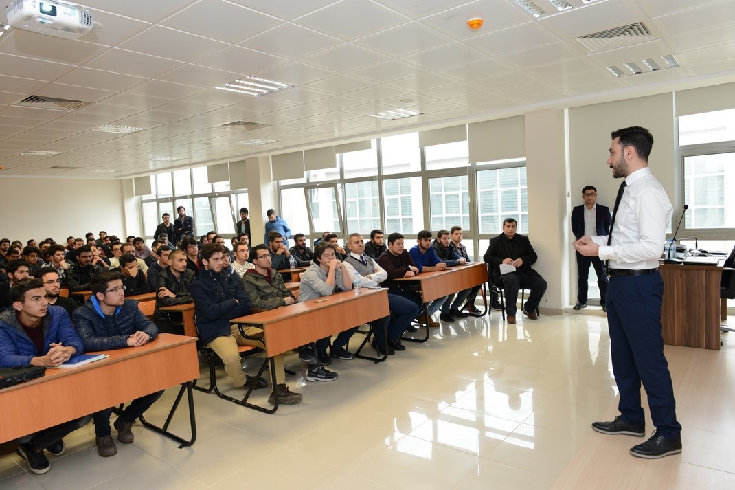 Meslek hayatında sürprizlerle karşılaşmamak için öğrencilik döneminde bölüm derslerine önem verilmesi gerektiğini ifade eden Duymaz, ‘Teoriden Pratiğe Geçiş (Staj)’, ‘Sektörde Makine Mühendisi İstihdamı’, ‘Makine Mühendisinin İstihdam Alanları’, ‘Bir Makine Mühendisinin CV Örneği’, ‘ İşveren Tarafından CV’de Görülmek İstenen Noktalar’, ‘Doğru Kariyer Hedefleri’ ve ‘Enerji Sektörünün Tanımı ve İstihdam Olanakları’ konularında bilgilendirme sunumu yaptı.