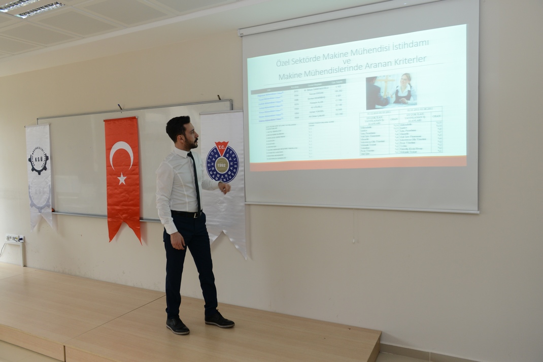 Kahramanmaraş Sütçü İmam Üniversitesi (KSÜ) Mühendislik ve Mimarlık Fakültesi Makine Mühendisliği Bölümü ve KSÜ Makine Mühendisliği Öğrenci Topluluğu tarafından “Mühendislik Kariyerinde İlk Adımlar ve Sektörel Bir Tercih Olarak Enerji” konulu seminer düzenlendi.