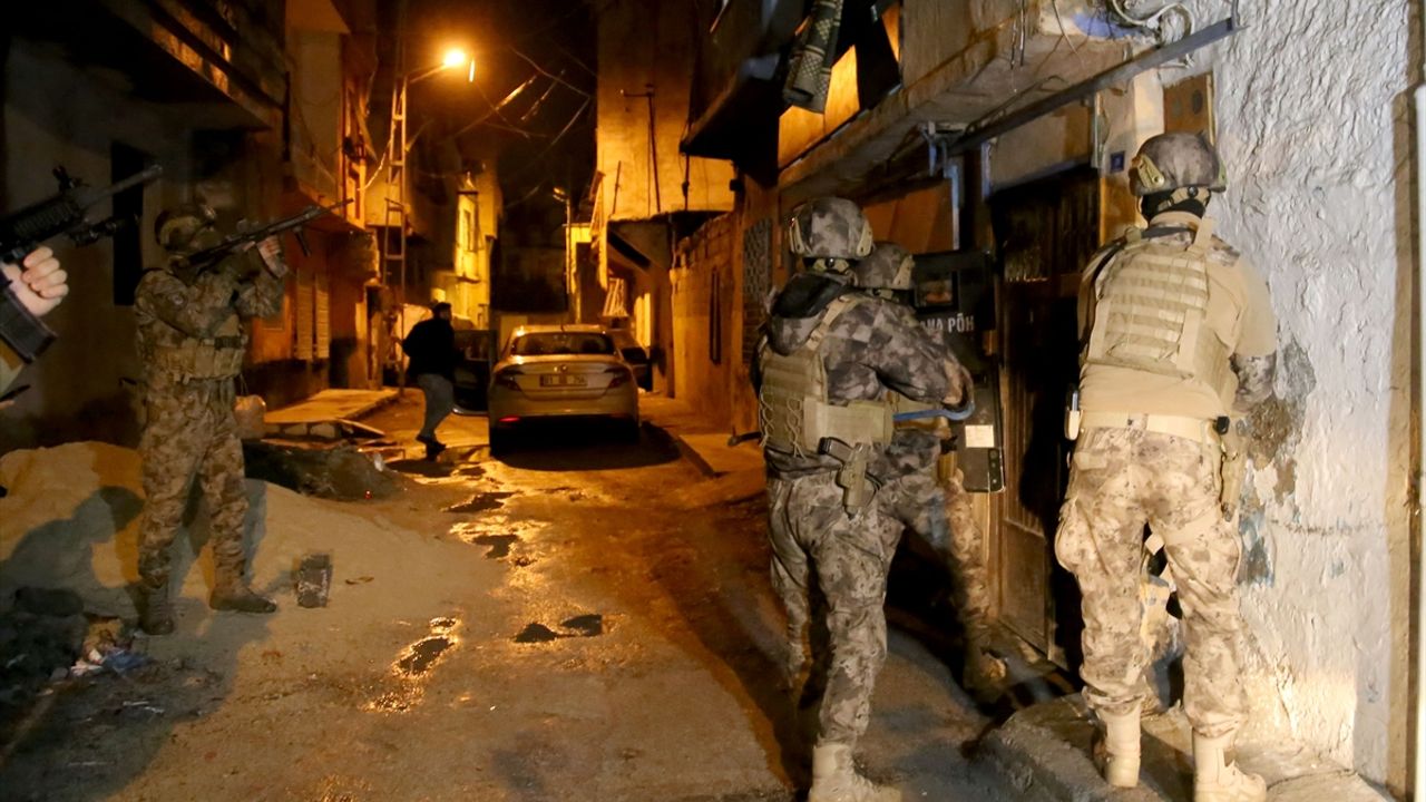 Özel harekat polislerinin de katıldığı operasyonda, zanlıların bulunduğu evlerin kapıları koçbaşıyla kırıldı.