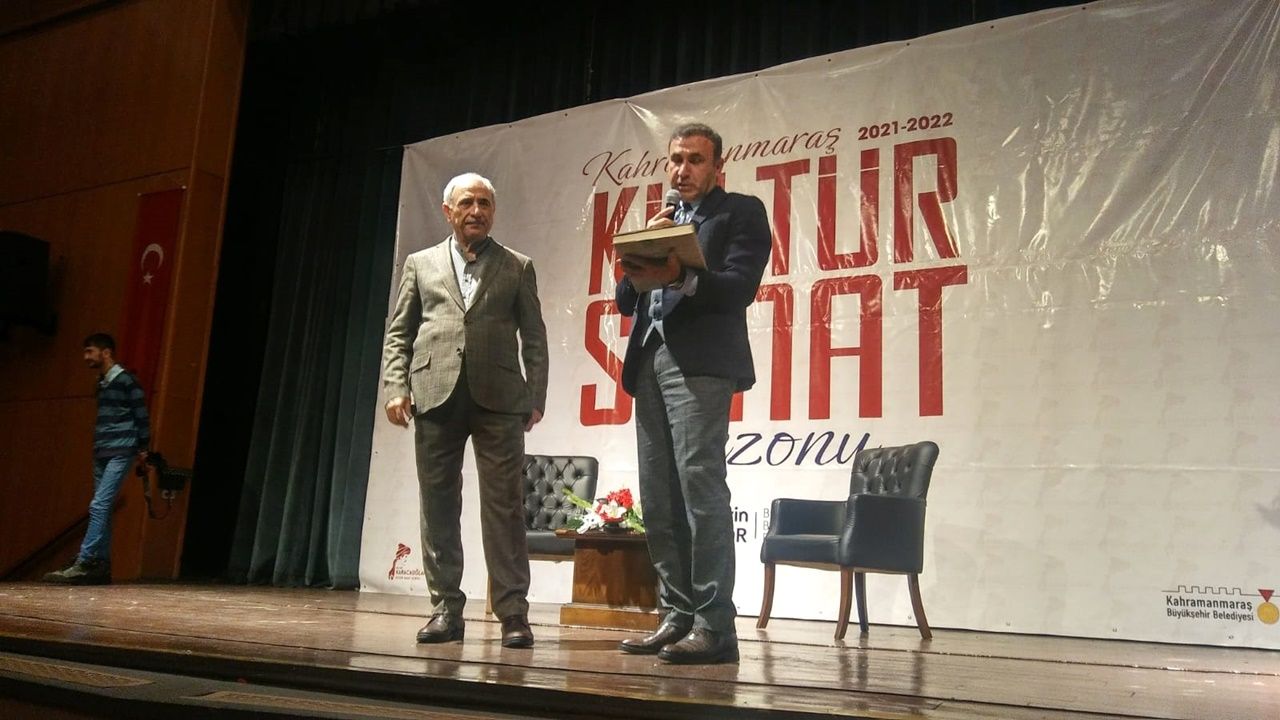 Kahramanmaraş Büyükşehir Belediyesi Mart Kültür Sanat Etkinlikleri kapsamında birbirinden önemli isimler Kahramanmaraşlılarla buluşmaya devam ediyor. Bu kapsamda, edebi ve mesleki pek çok esere imza atan Prof. Dr. Nurullah Genç, Necip Fazıl Kısakürek Kültür Merkezi’nde sanatseverlerle buluştu. Moderatörlüğünü Ömer Yalçınova’nın yaptığı ‘Hikâyem, Hayatımdır’ adlı etkinliğe kültür sanat dostları yoğun ilgi gösterdi. Etkinlik sonunda Kültür Spor ve Turizm Dairesi Başkanı Duran Doğan, Şair Nurullah Genç’e teşekkür ederek Büyükşehir Belediyesi Kültür Yayınları hediye etti.